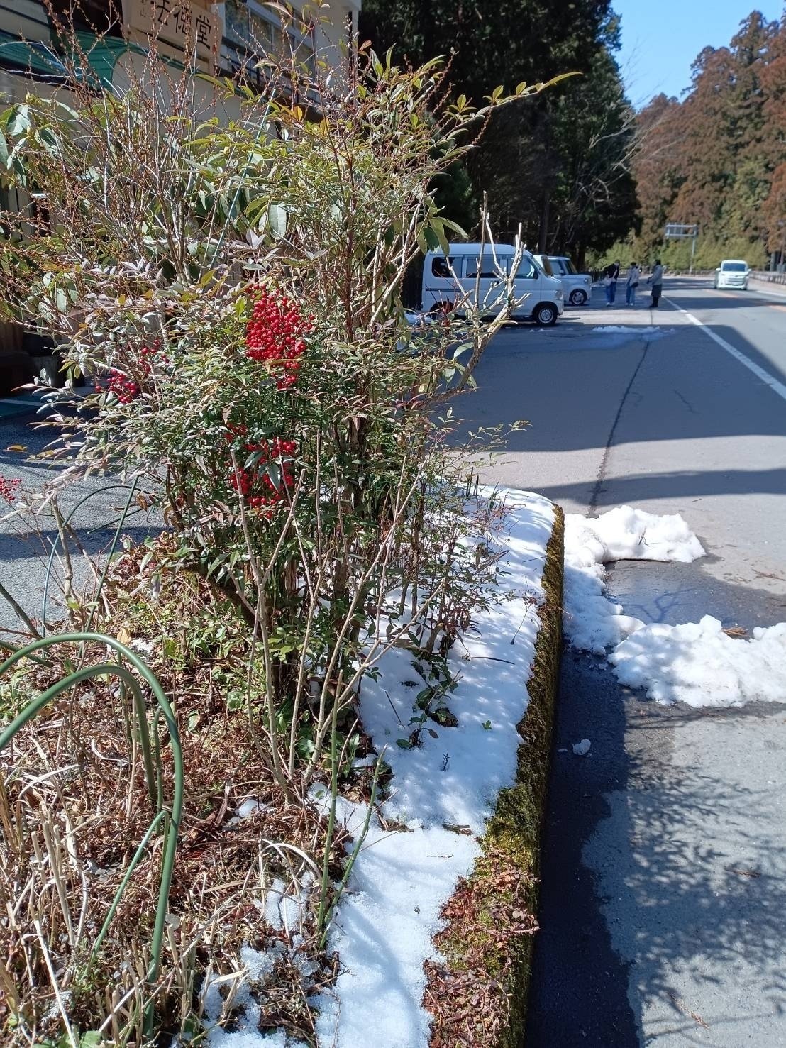 こんにちは☺今日の高野山は青空です☀路面に雪は無く日陰に少し残っている程度になりました❄