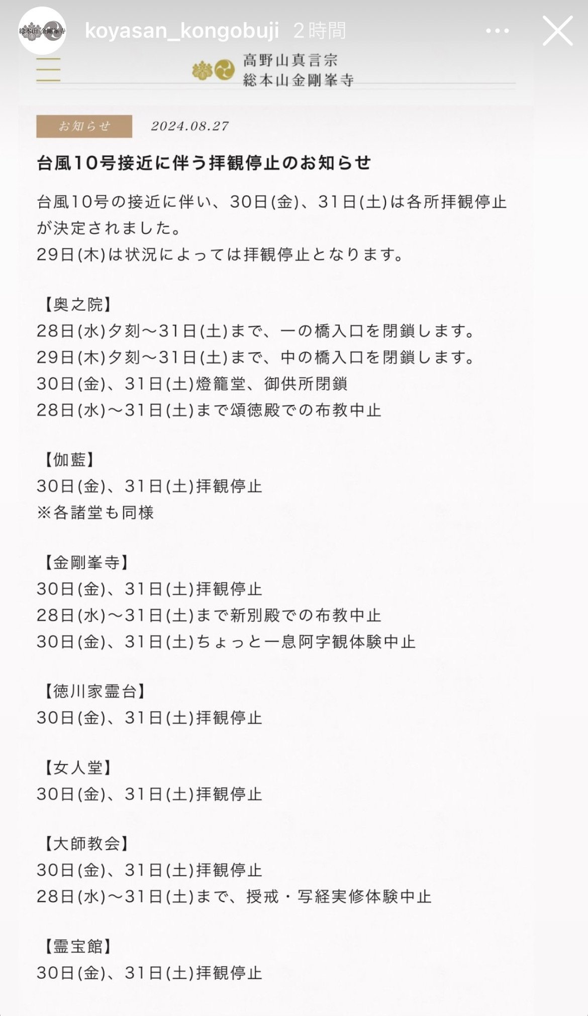 30日31日は、拝観停止が決定されています。