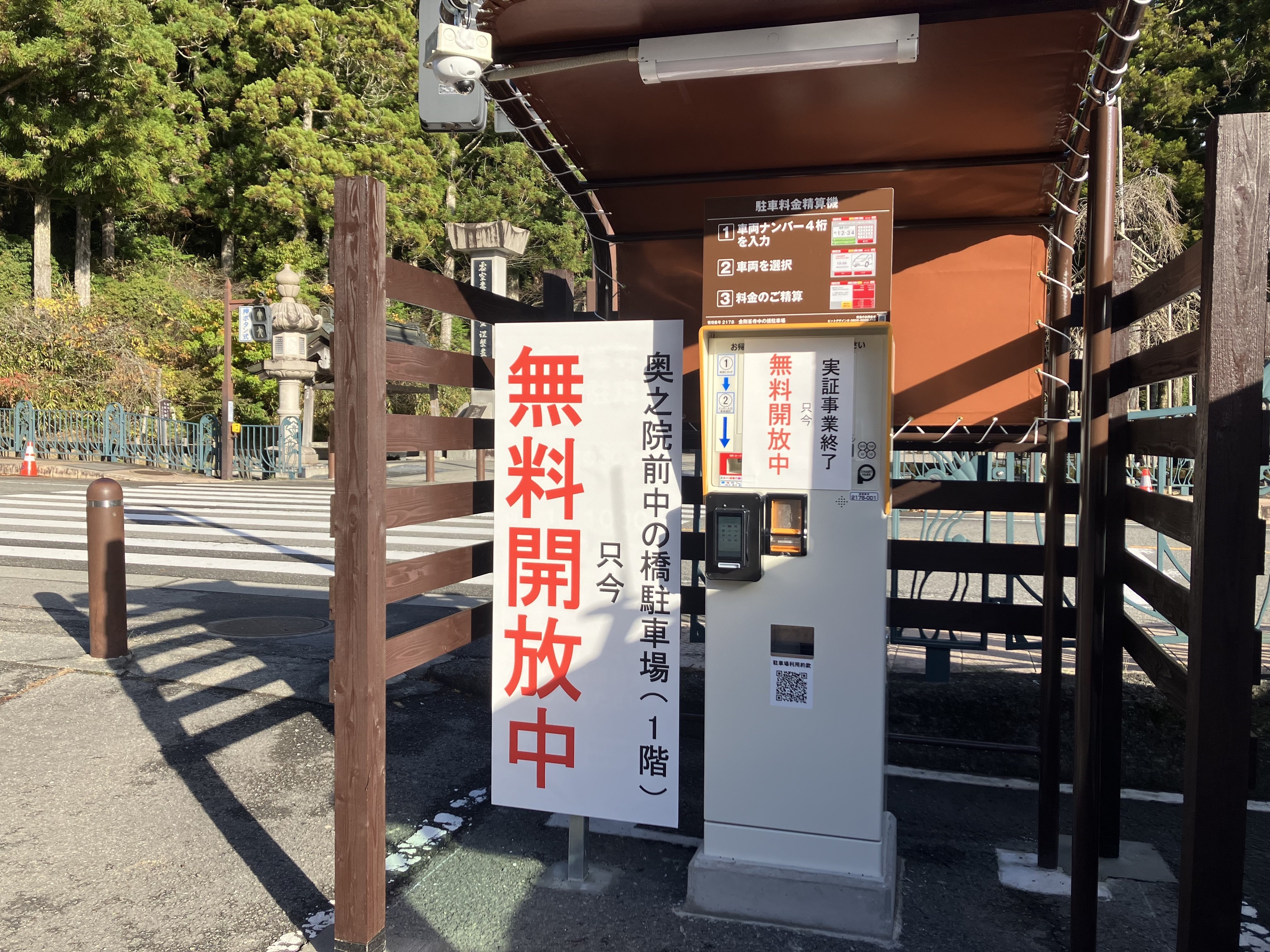 奥の院前 中の橋駐車場が無料です。本日も、晴れてお参り日和です。平日は、車も少なくゆったりとしております😊
